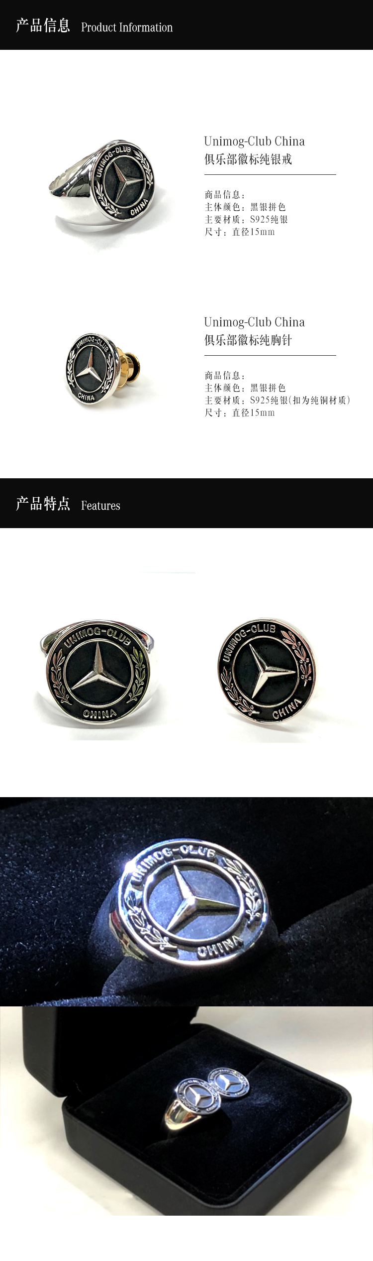 商品名称:俱乐部徽标纯银戒指&纯银胸针